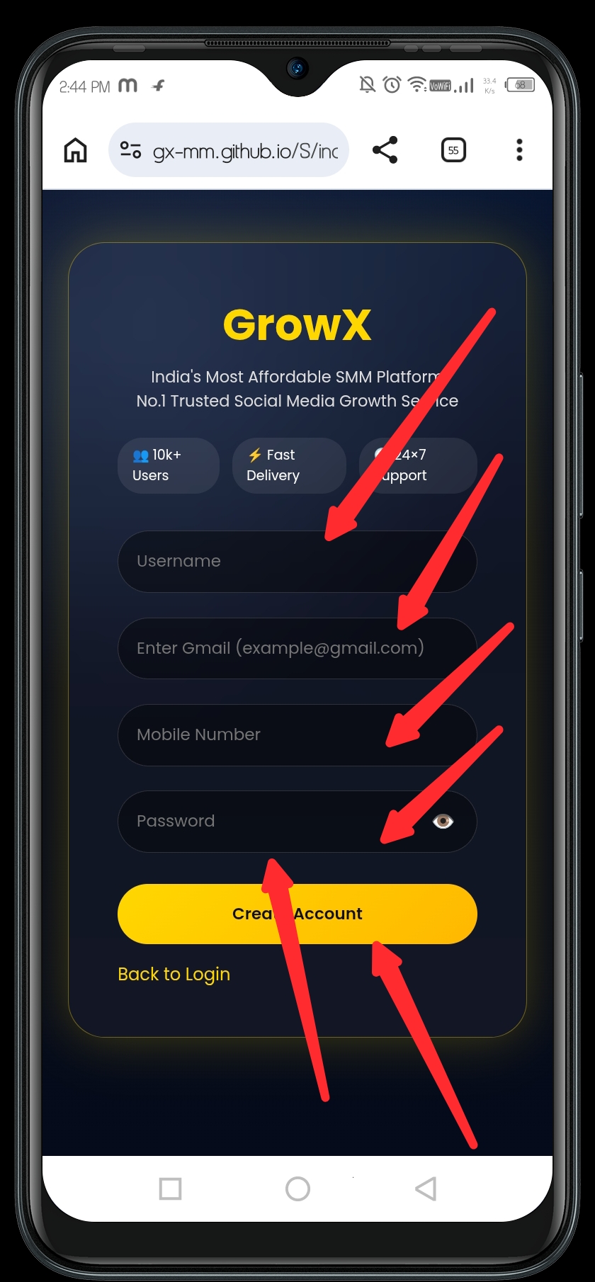 GrowX panel उपयोग करने के लिए आपको पहले account बनाना होगा।